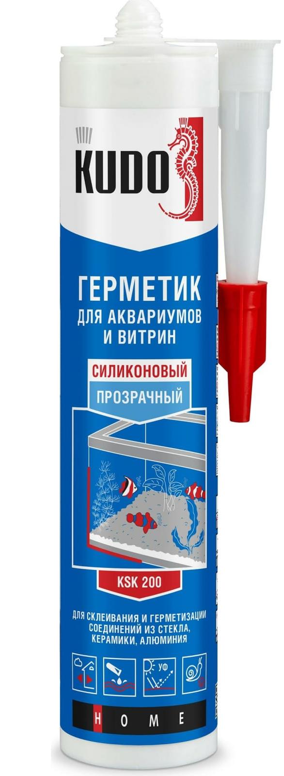Герметик для аквариумов и витрин KUDO прозрачный 280 мл применяется при изготовлении и ремонте аквариумов, террариумов, для надежной герметизации соединений из таких материалов, как стекло, керамика, нержавеющая сталь, анодированный алюминий, дерево, ПВХ