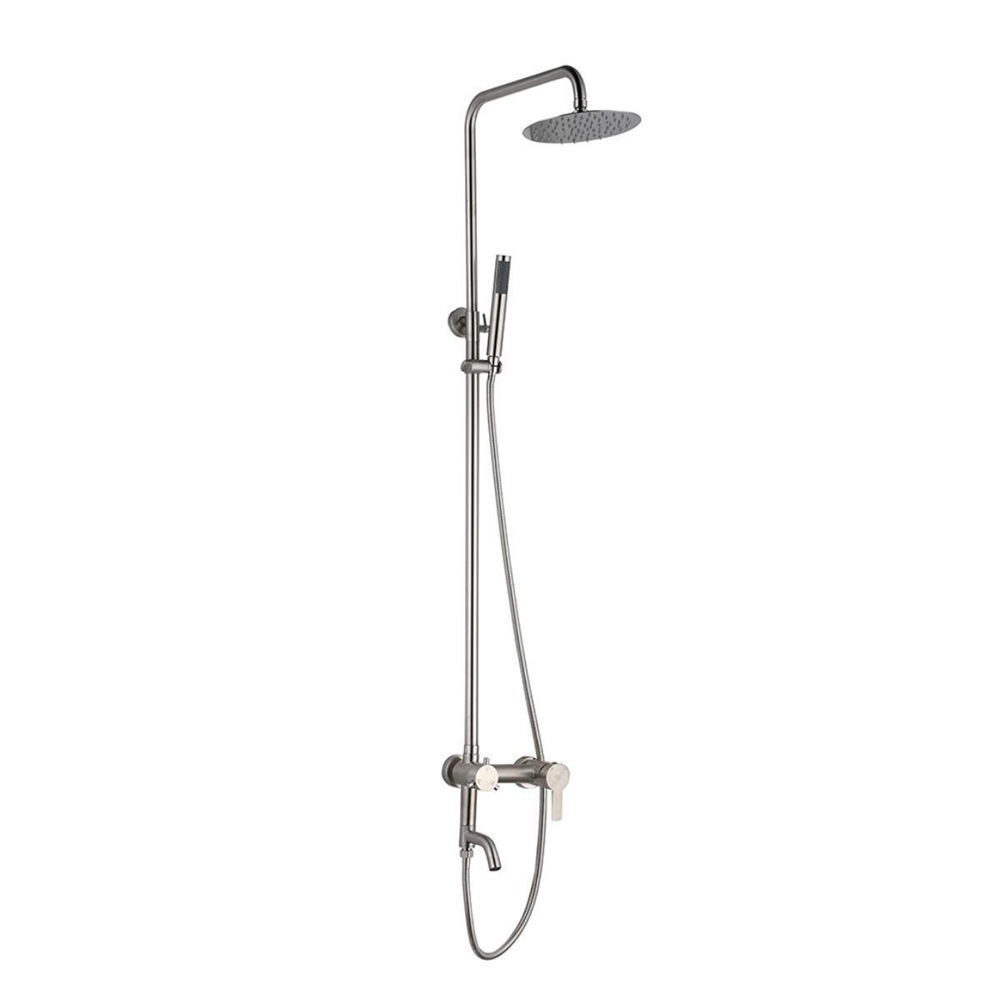 - Комплектация: смеситель, стойка для душа, тропическая лейка, лейка для душа, шланг, эксцентрики, отражатели, паспорт